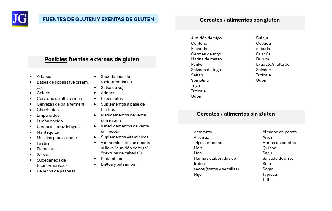 - Aprende a identificar alimentos sin gluten y productos con gluten oculto.